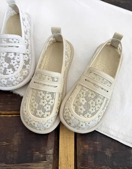 Round Head Soft Soles Embroidery Lace Flat Loafers