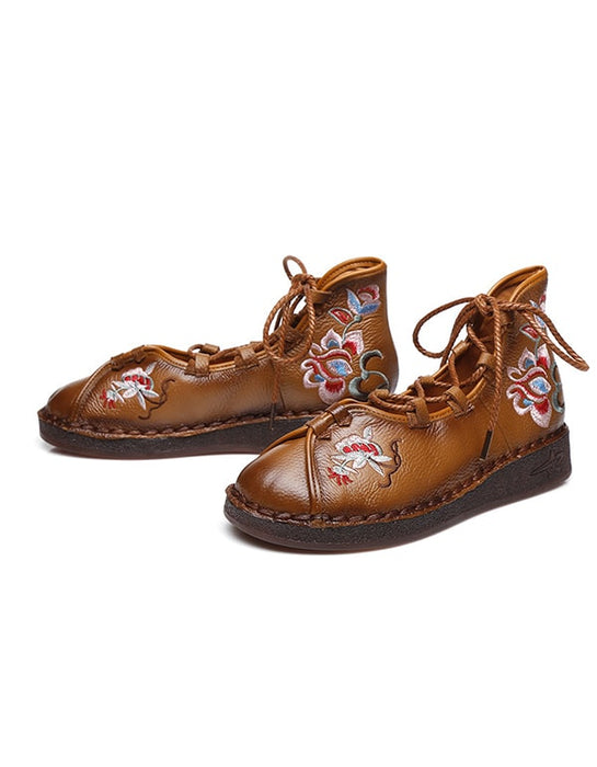 Zapatos planos retro hechos a mano con bordado de suela blanda