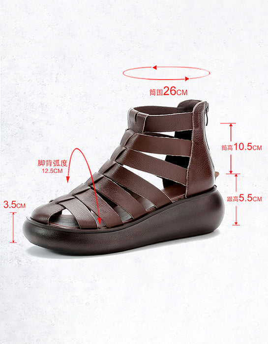 Sandalias de cuña con tiras estilo retro romano para mujer
