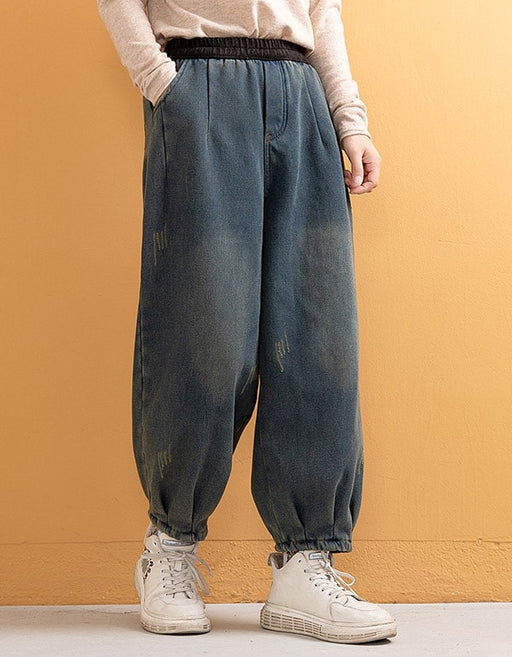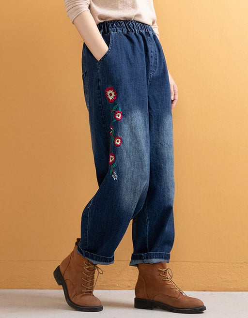 View full detailsWomen's Elastic Waist Embroidery Denim Pants