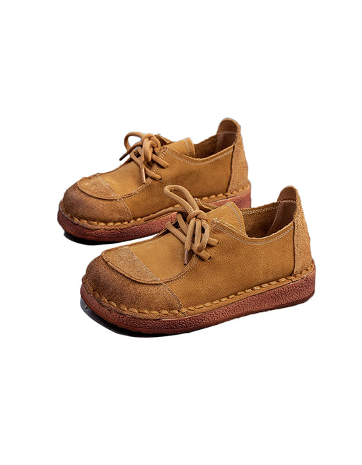 Soft Leather Lace-up Handmade Retro Flat Shoes