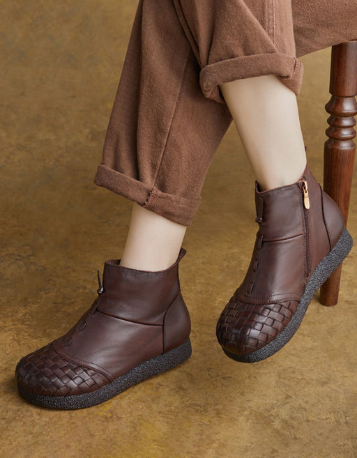Winter Autumn Handmade Leather Woven Soft Sole Ankle Boots