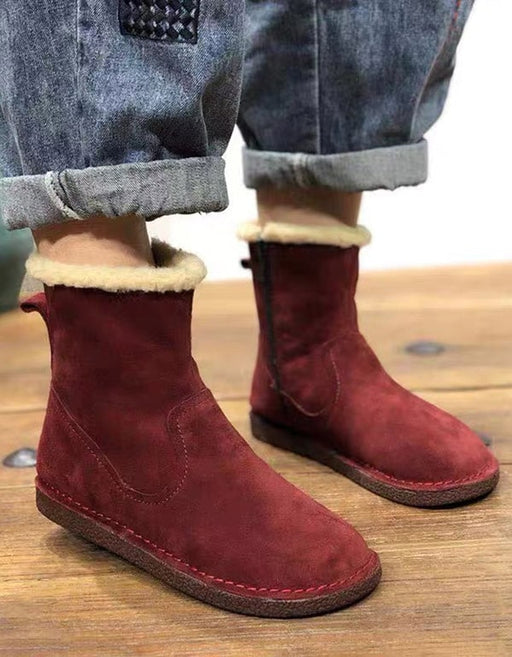 View full detailsWinter Plush Mid-tube Retro Leather Wedge Boots