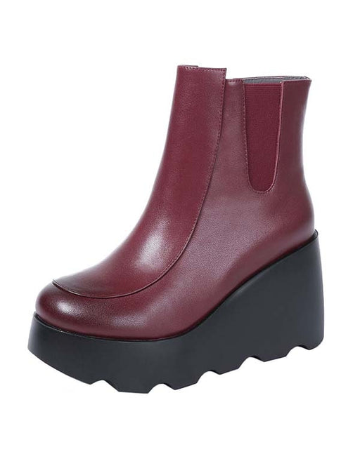 View full detailsRound Toe Smooth Leather Retro Wedge Boots