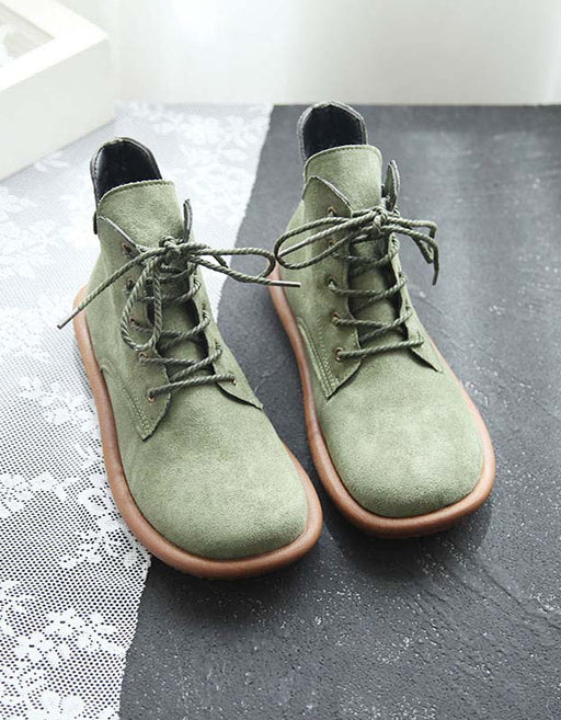 Suede Lace-up Round Toe Flat Ankle Boots