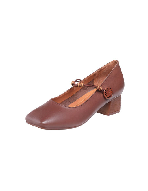 View full detailsHandmade Retro Leather Squre Head Chunky Heel Pumps