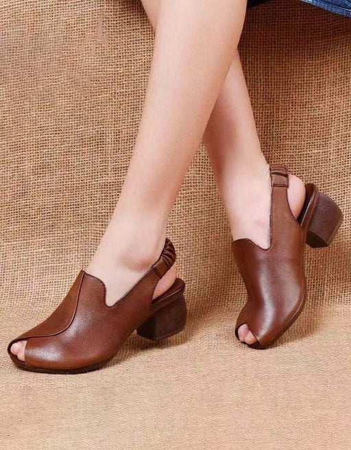 View full detailsRetro Leather Slingback Fish Toe Chunky Heel Sandals