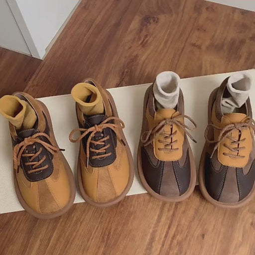 Leather Stitching Lace-up Suede Wide Toe Box Clogs