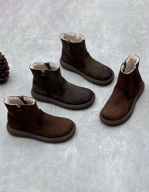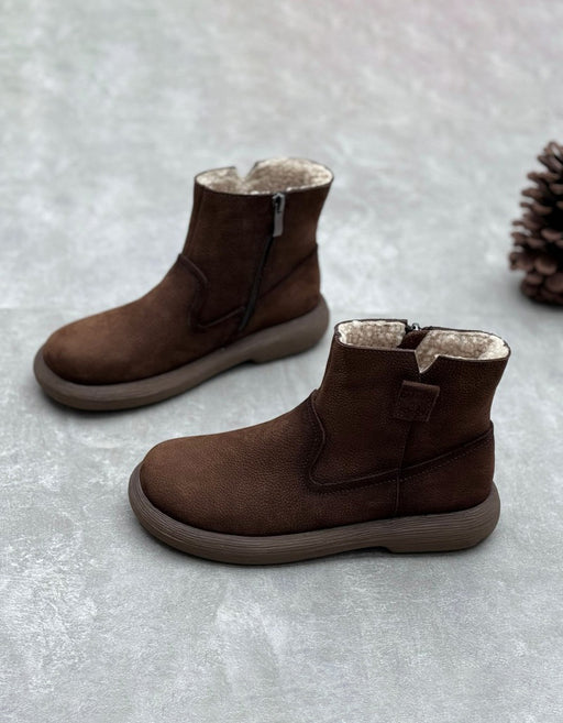 Item Type:Winter Ankle Boots Gender: Female Main Material: Cowhide | Suede Heel Type: Flat Outsole Material: Rubber Heel Height: Low(2-3cm) Closur...