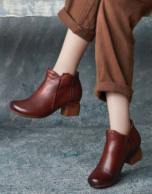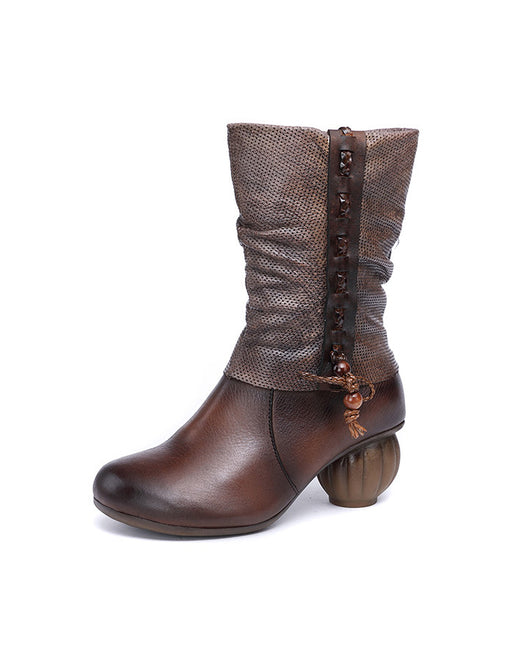 View full detailsGenuine Leather Hand-brushed Ethnic Style Chunky Heel Boots