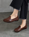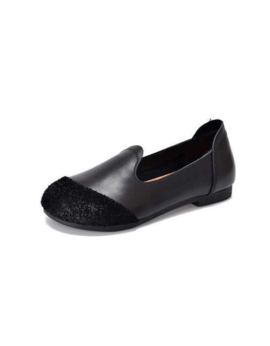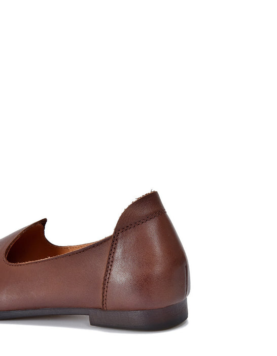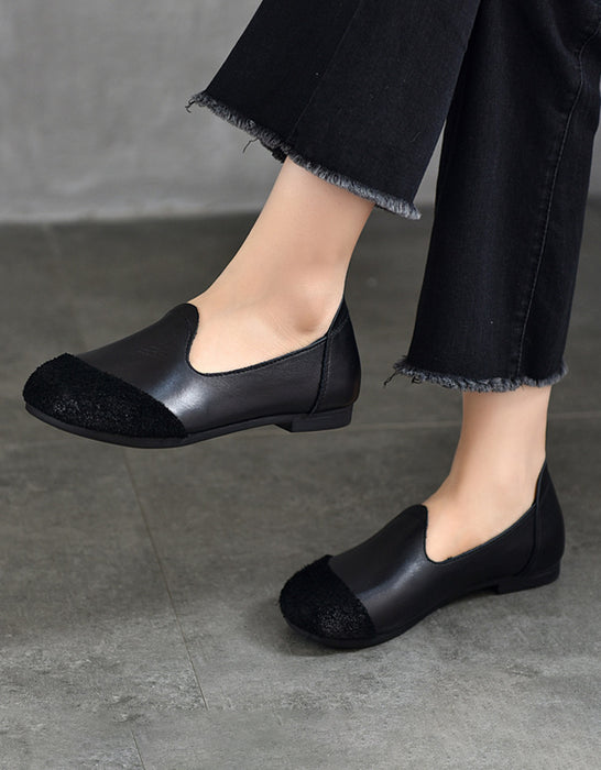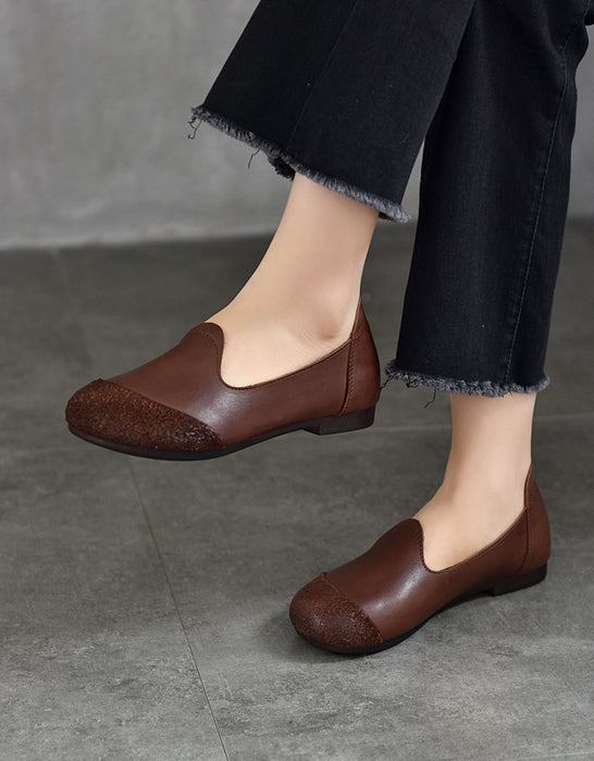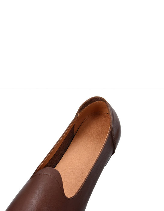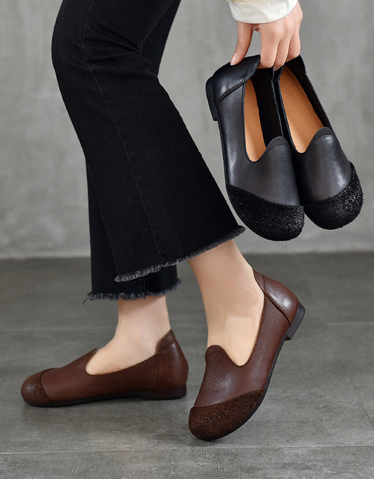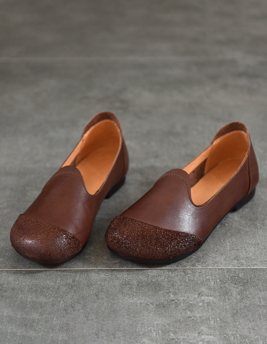 Toe Leather Stitching Soft Leather Retro Flat Shoes