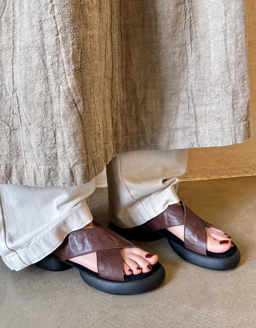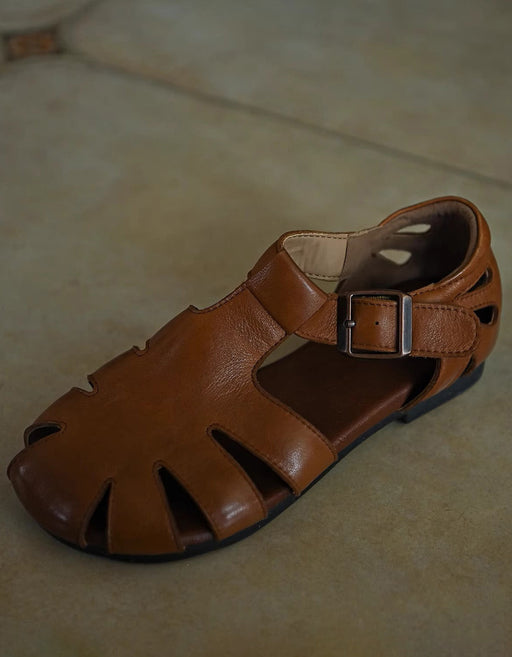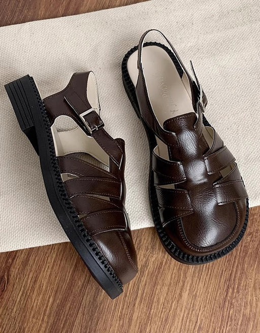 Features: Item Type: Sandals Slingback | Fisherman Sandals Gender: Female Main Material: Cowhide Heel Type: Flat Upper Material: Cowhide Heel Hei...