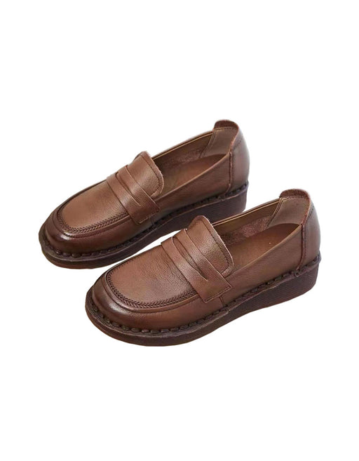View full detailsRetro Leather Wide Toe Box Platform Chunky Loafers
