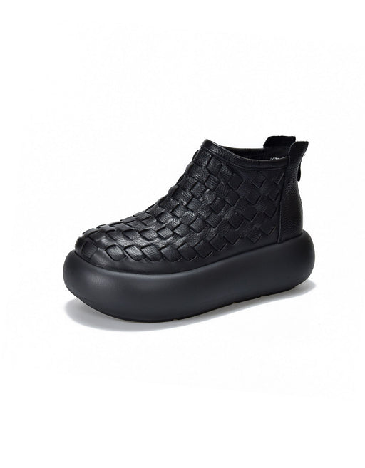 View full detailsAutumn Winter Round Toe Leather Woven Platform Boots