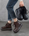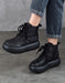 Autumn Winter Leather Woven Lae-up Platform Boots