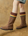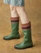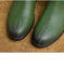 Shop these Obiono winter autumn genuine leather round toe mid-calf boots. Crafted from premium soft leather, these boots offer durability, warmth, and comfort for the cooler seasons. The unique green color with contrasting brown, red, and black cuff accents adds a chic touch to any outfit. Featuring a flexible sole and round toe design, these women’s leather boots provide all-day comfort and timeless elegance for fall and winter fashion.