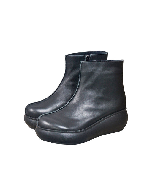 Features: Item: Retro Wedge Boots Gender: Female Main Material: Cowhide Sole: Rubber Heel Type: Platform | Wedge Process: Handmade Heel Height: M...
