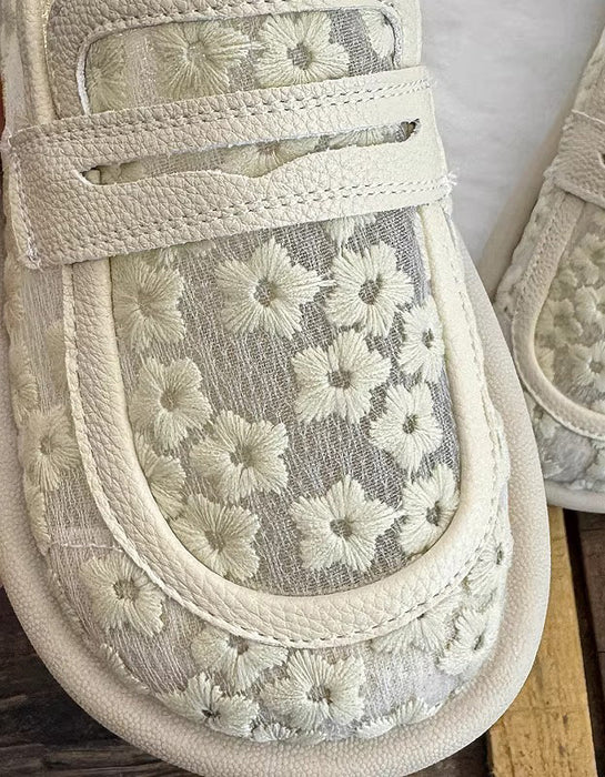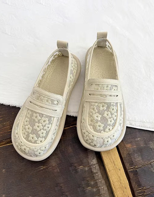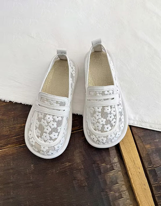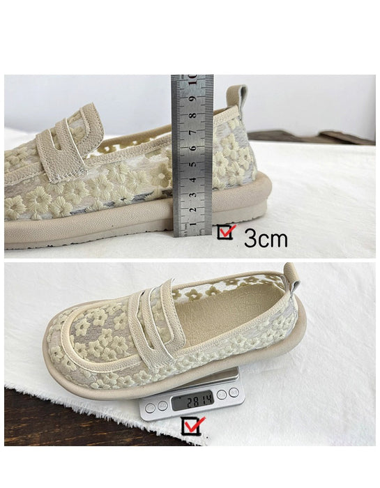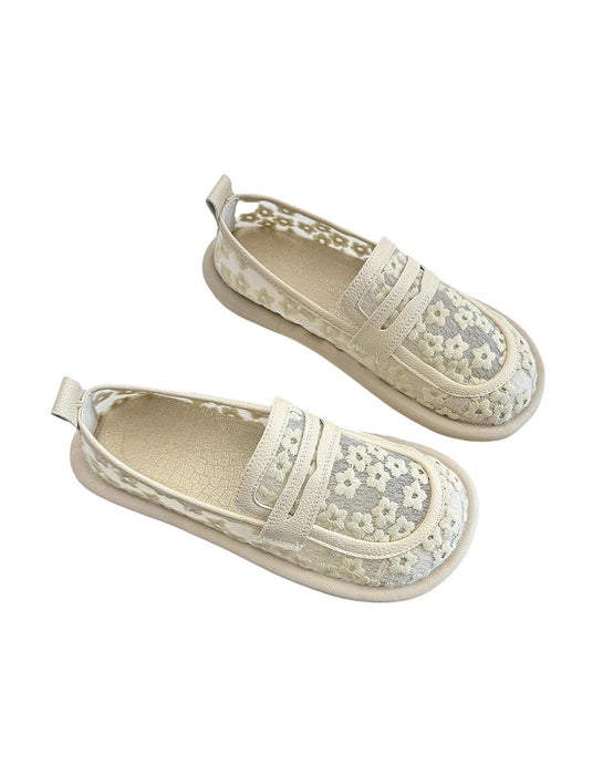 Round Head Soft Soles Embroidery Lace Flat Loafers