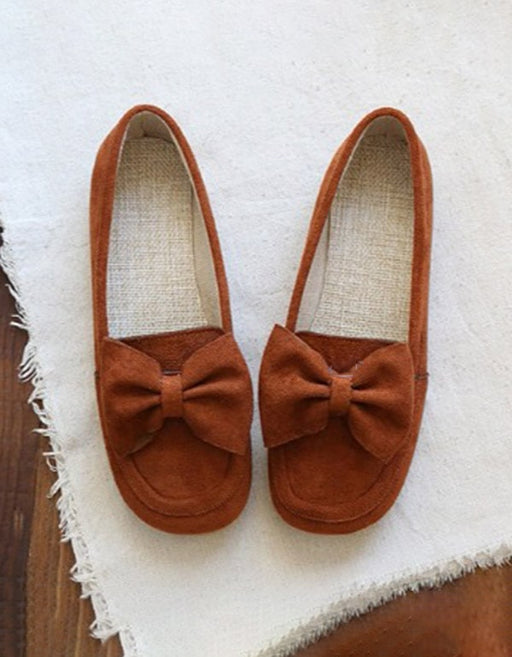 View full detailsRound Head Bowknot Soft Suede Flat Shoes