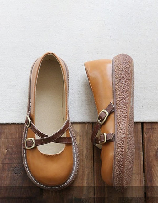 Soft Leather Comfortable Handmade Retro Flat Walking Shoes