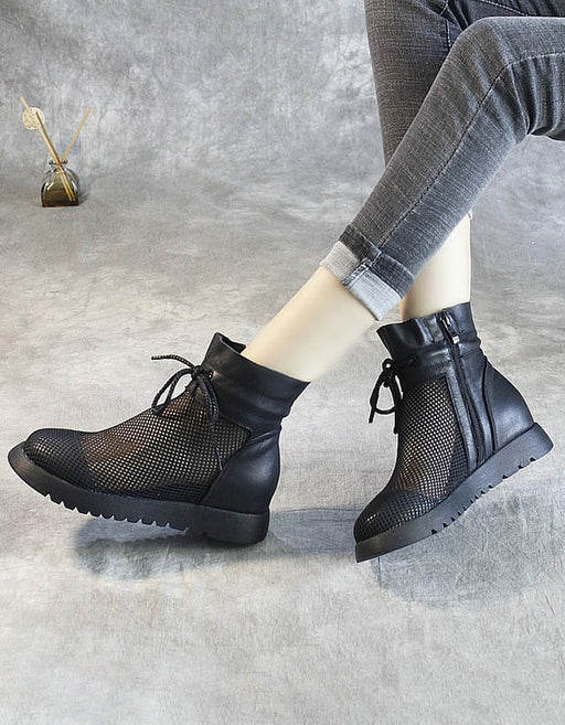 View full detailsRetro Leather Mesh Summer Boots Black