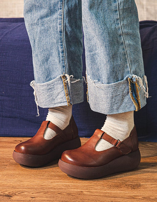 View full detailsHandmade Round Head Wedge T-strap Sandals