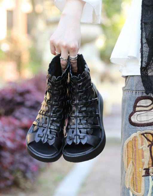 View full detailsHandmade Leather Close-toe Hollow Wedge Shoes