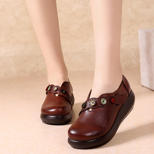 View full detailsRetro Leather Handmade Round Head Wedge Shoes