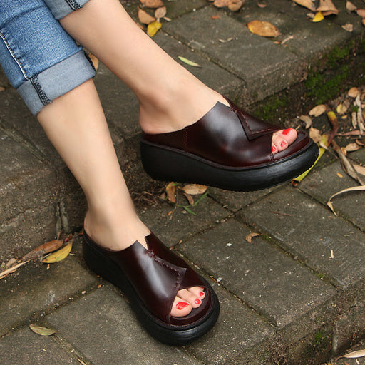 Features: Item: Retro Sandals Gender: Women Main Material: Cowhide Heel Type: Wedge | Platform Upper Material: Cow Leather Heel Height: Middle (...