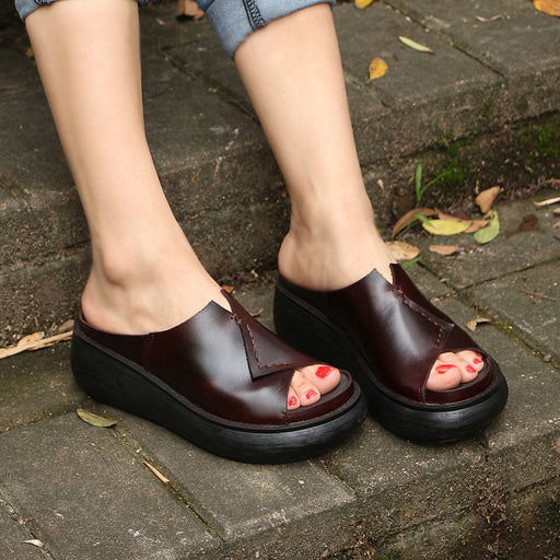 Features: Item: Retro Slippers Gender: Women Shoes Main Material:Cowhide Heel Type: Wedge Upper Material:Cow Leather Heel Height: High (6 cm) Clos...