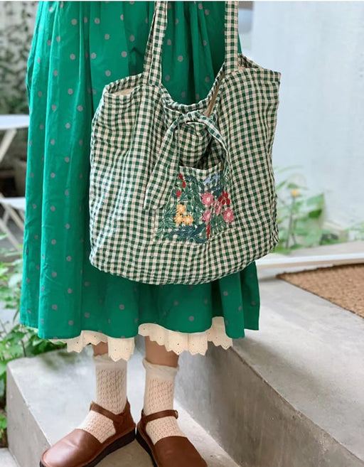 Country Style Embroidered Plaid Shoulder Bag