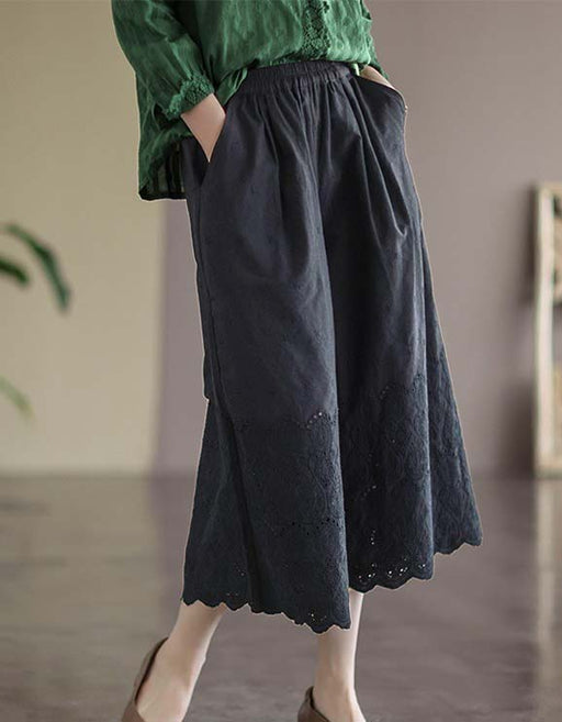 View full detailsFlower Embroidered Hollow Casual Wide-leg Pants