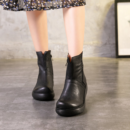 View full detailsRetro Leather Winter Fur Inside Wedge Boots | Gift Shoes