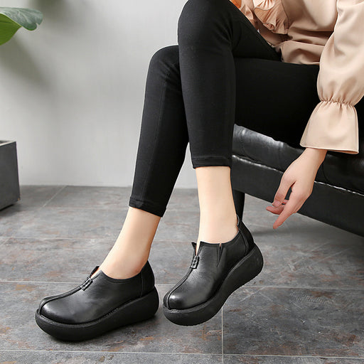 View full detailsLeather Retro Spring Wedge Women's Shoes
