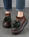 These handmade retro leather flowers platform boots combine vintage charm with modern comfort. Expertly crafted from high-quality genuine leather, these women ankle boots feature exquisite hand-applied floral decorations that add a unique artistic flair. The soft leather upper provides a flexible and breathable fit, while the thick cushioned platform sole offers excellent support and shock absorption for all-day comfort. With a convenient side zipper and a durable non-slip outsole, these winter platform boots are both practical and stylish. Perfect for autumn and winter, they pair beautifully with jeans, skirts, or dresses, making them a versatile addition to any wardrobe. Ideal for those who appreciate artisanal craftsmanship and distinctive retro-inspired fashion, these floral leather boots bring together elegance, creativity, and comfort in every step.