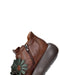 Handmade Round Toe Retro Leather Flowers Platform Boots