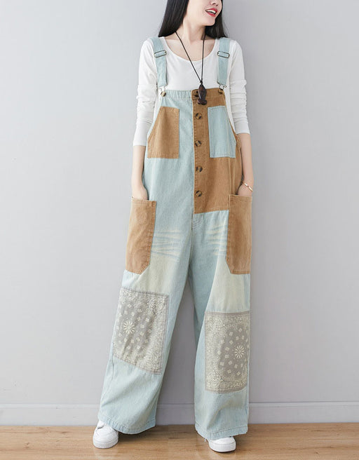 Denim Patch Oversize Loose Wide-leg Jumpsuit