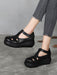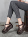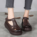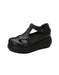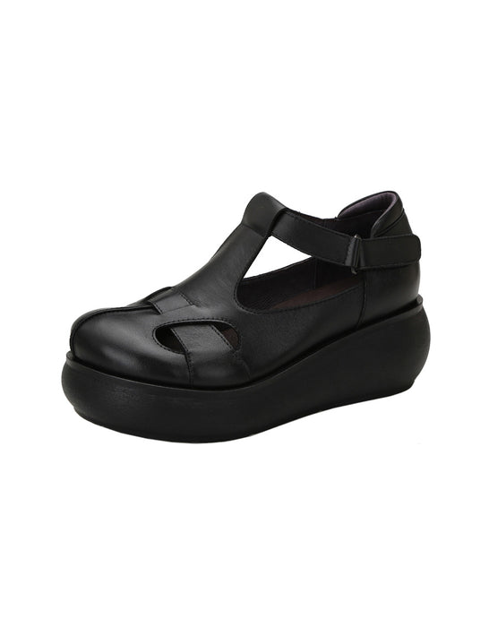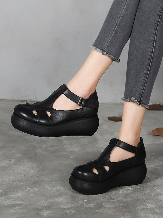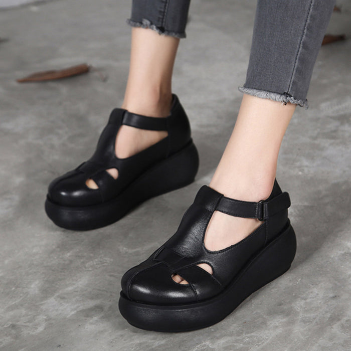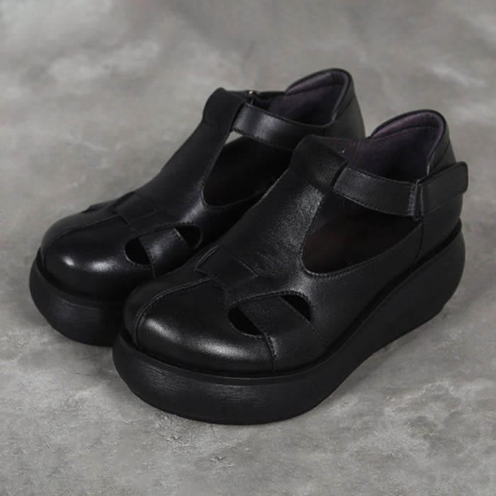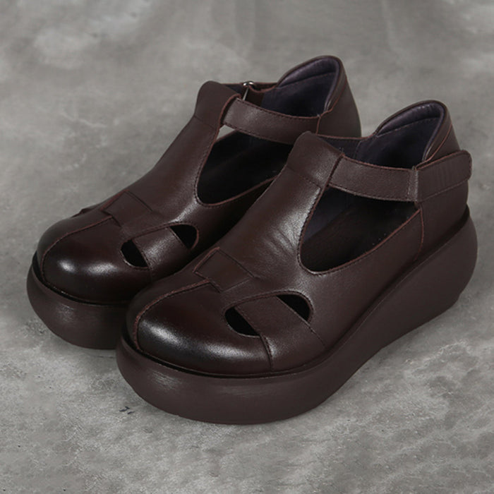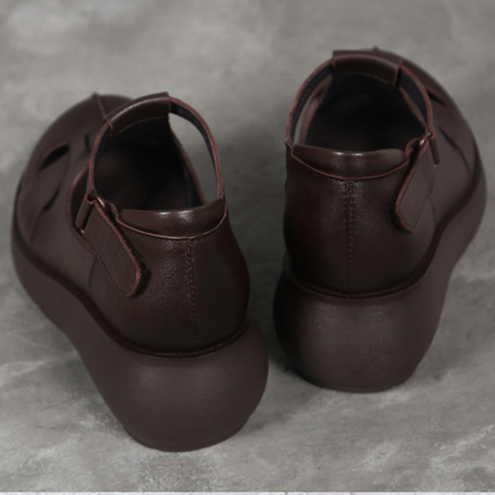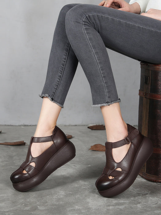 Handmade Retro Leather T-strap Wedge Sandals