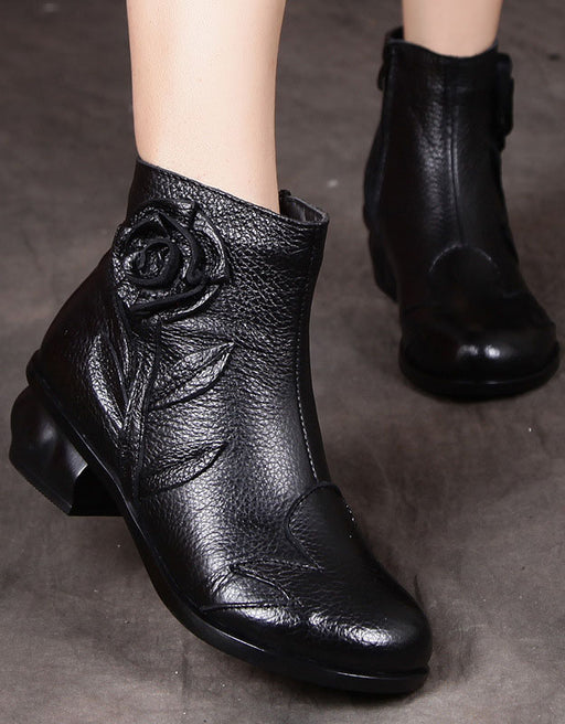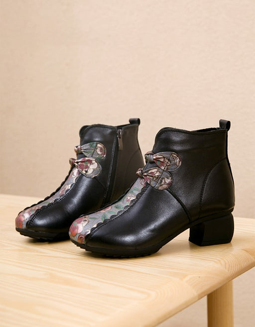 View full detailsEthnic Style Leather Print Flower Chunky Heel Boots