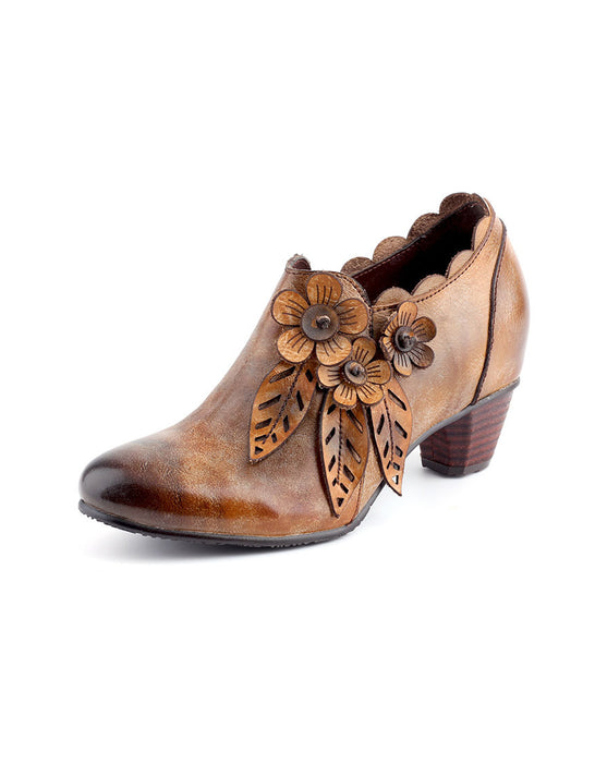 Handmade Side Flower Elegant Chunky Heels (36-42)
