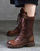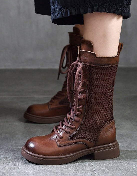 Handmade Lace-up Long Leather Boots for Summer