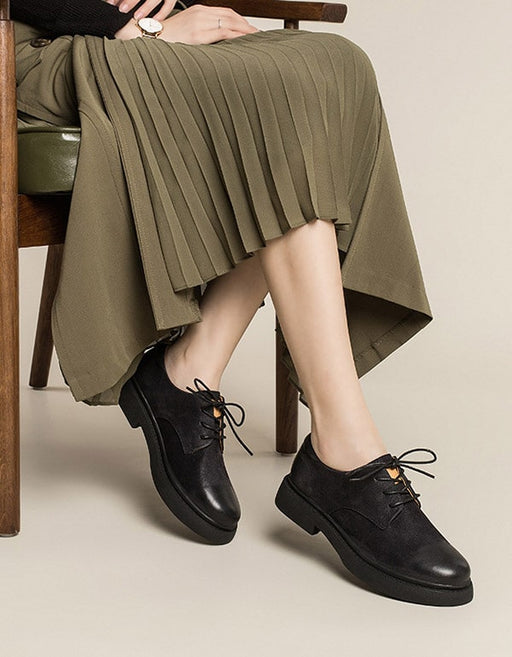 Gender:Women Main Material:Cowhide Heel Type:Flat Upper Material:Cow Leather Heel Height: Low (3.5cm) Closure Type: Lace Up Color: Black, brown ...