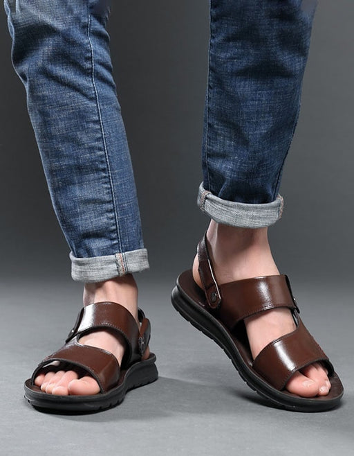 Features:  Item Type: Men's Sandals Brand: Obiono Gender: Male Main Material: Cowhide Heel Type: Flat Upper Material: Cow Leather Heel Height: Lo...