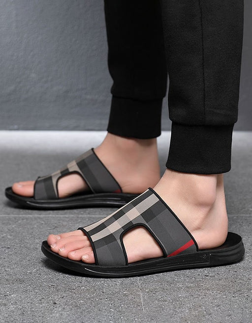 Features:  Item Type: Plaid Slippers  Brand: Obiono Gender: Male Main Material: Cow leather Heel Type: Flat Heel Height: Low (3 cm) Closure Type:...
