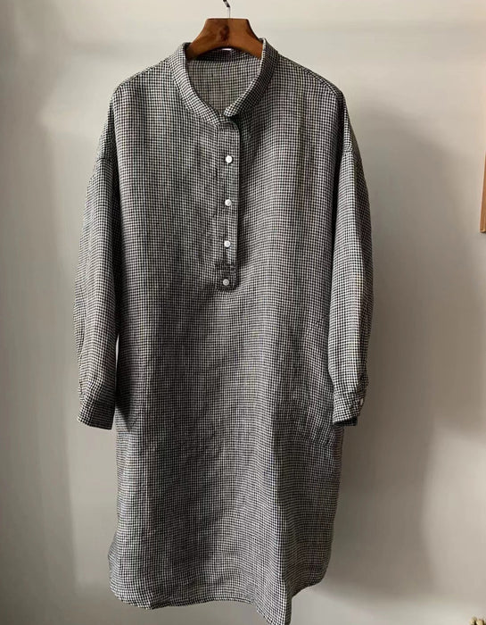 Spring Linen Mid-length Long-sleeved Shirt Dress