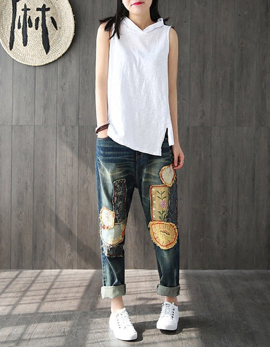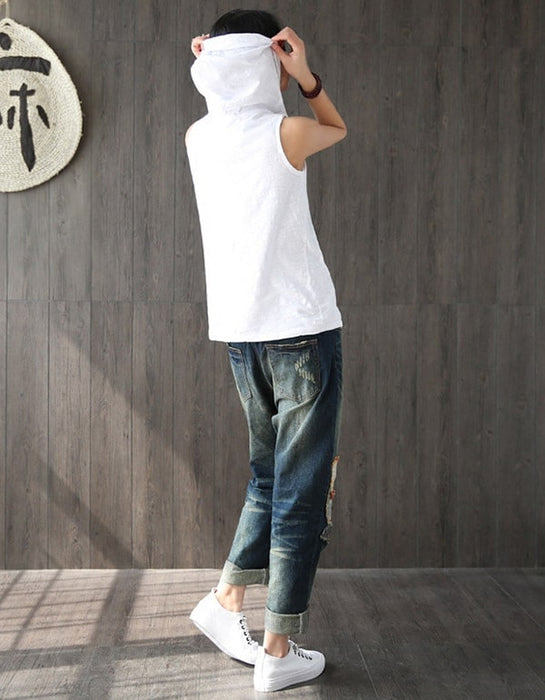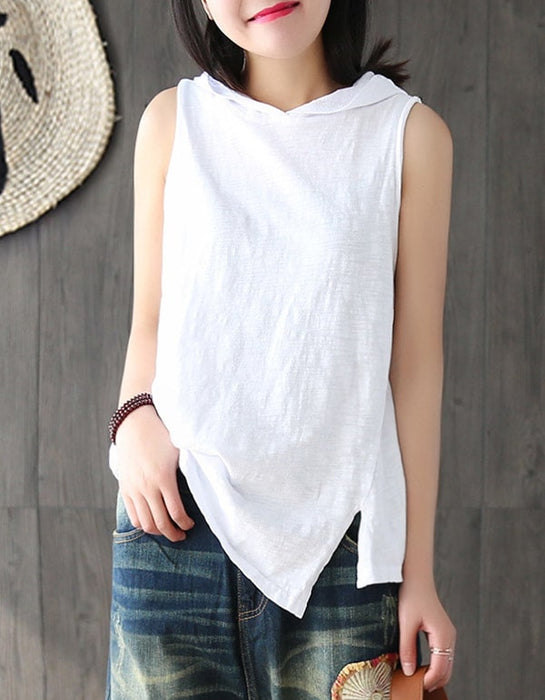 Women's White Sleeveless Hooded T-shirt