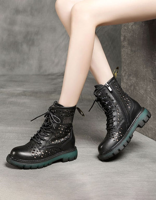 View full detailsRound Toe Hollow Leather Handmade Retro Ankle Boots