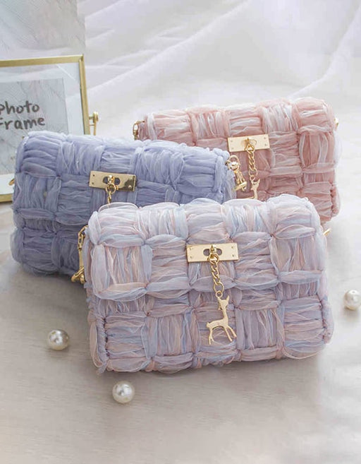 Features: Item Type: Homemade Bag, DIY Gift, DIY Bag Gender: Female Process: Handmade Material: 4 ribbons; 1 net; 1 suture needle; 1 metal chain...