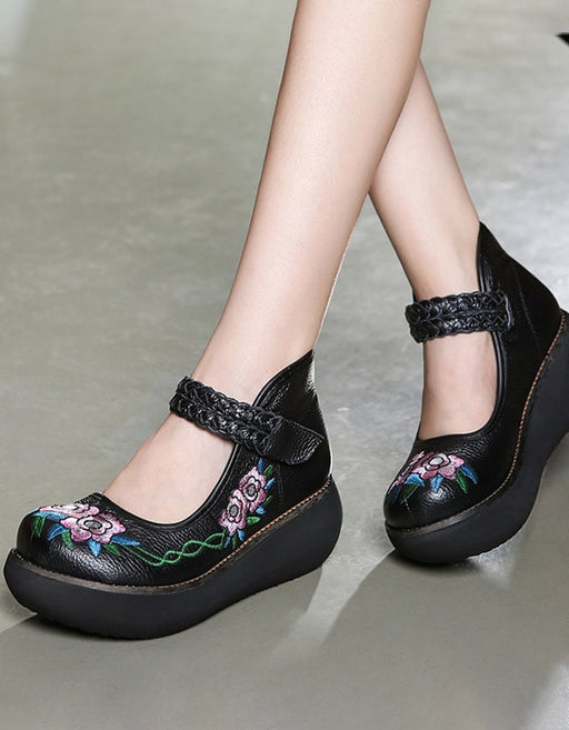 View full detailsPlatform Round Head Buckle Embroidered Ethnic Shoes