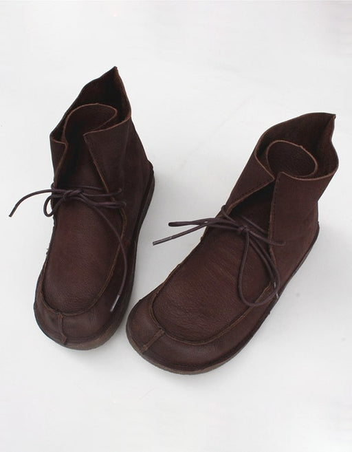 View full detailsRetro Leather Handmade Lace-up Ankle Boots